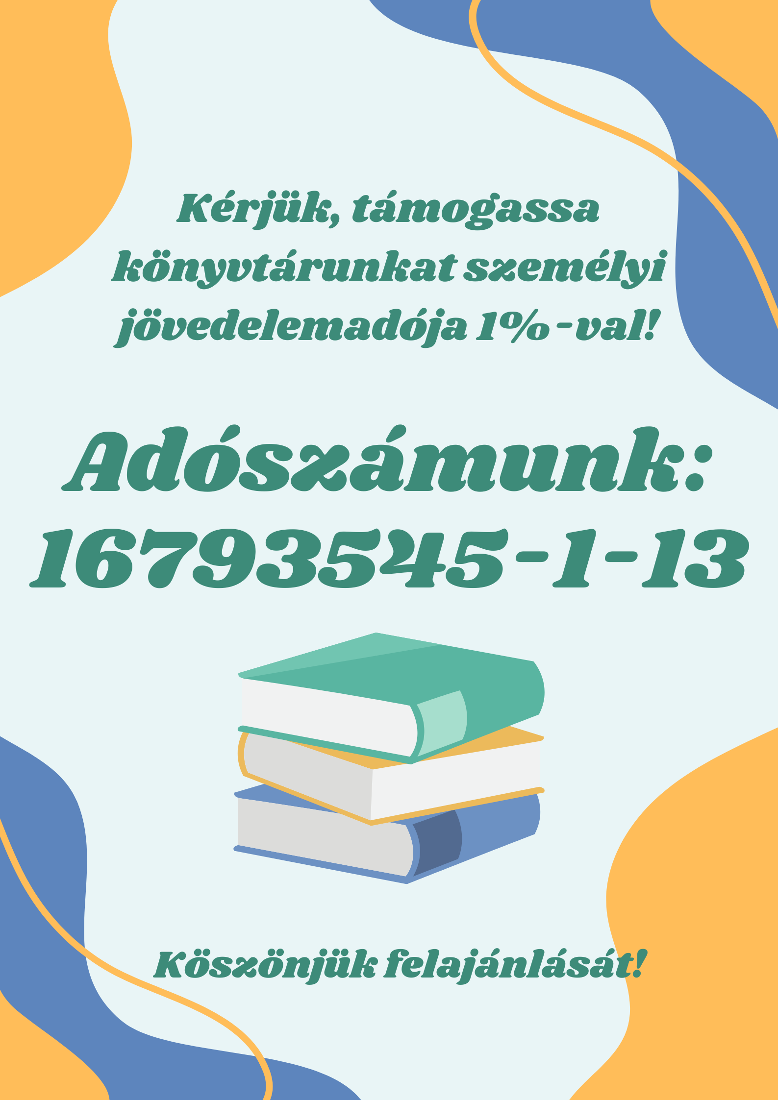 Könyvtárunk várja középiskolás diákok jelentkezését kötelező iskolai közösségi szolgálatra szeptember 1-től.